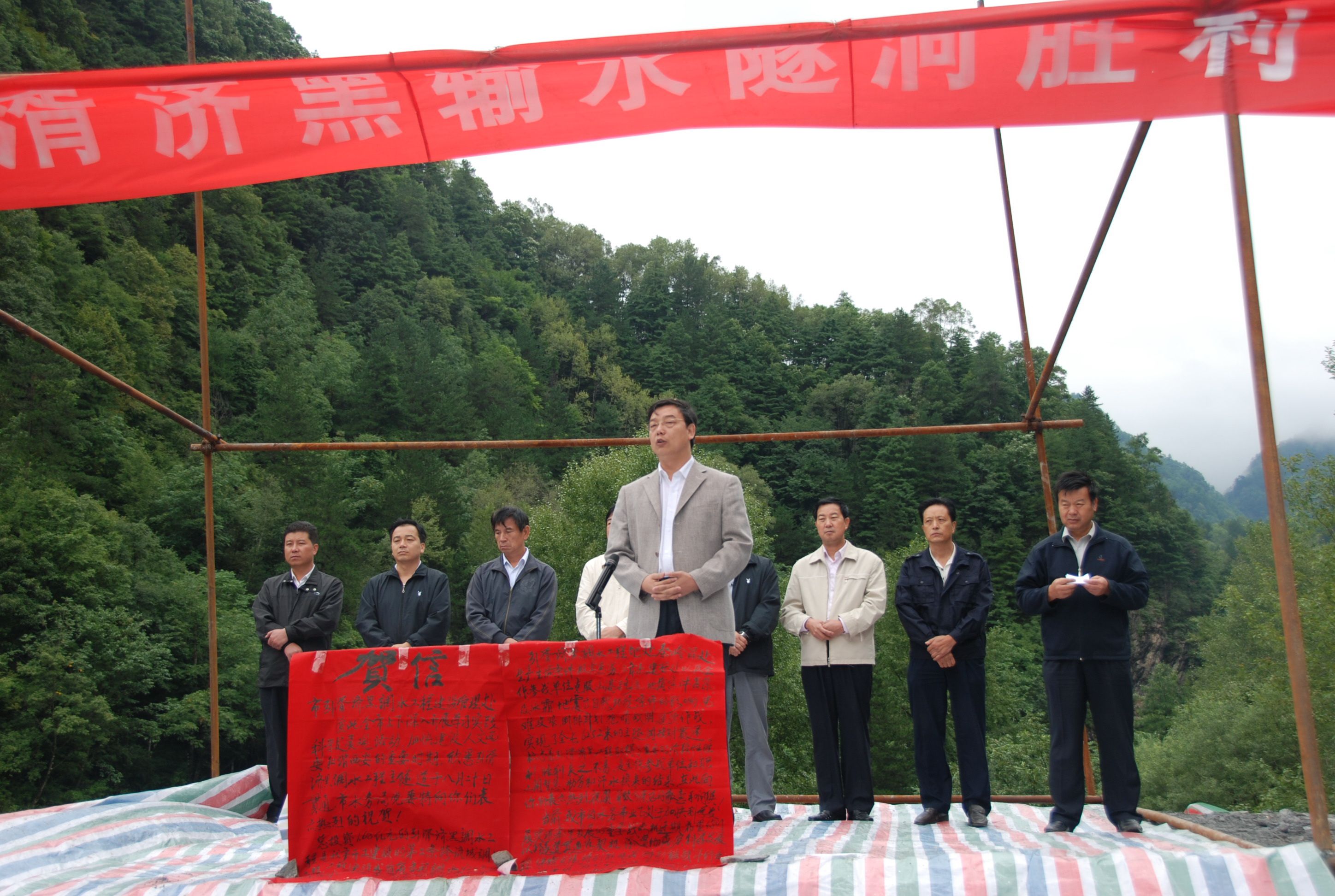 慶祝引湑濟黑輸水隧洞順利貫通儀式,公司董事長王長隨代表全體施工單位發(fā)言