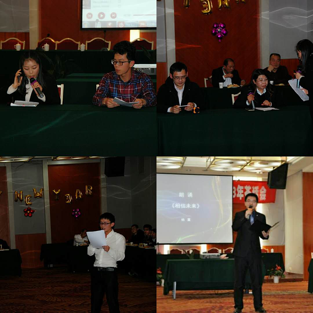 下午公司舉行了聯(lián)歡會,不僅有余音繞梁的女聲獨唱、高亢嘹亮的男生獨唱,而且還有引人入勝的情景劇、感人至深的朗誦等,年會過程中還穿插了有趣的團(tuán)隊游戲,大家用心投入的表演無不展現(xiàn)著治水人創(chuàng)新、務(wù)實、自信的風(fēng)采以及西安水建員工的綜合素養(yǎng)。聯(lián)歡會不僅給大家?guī)砹藲g聲笑語,同時也讓同事之間彼此的心更加貼近。公司領(lǐng)導(dǎo)與員工親情互動,歌聲、掌聲、歡呼聲在會場上此起彼伏,整場聯(lián)歡會高潮迭起,展現(xiàn)出西安水建集團(tuán)這個大家庭的歡樂和諧。